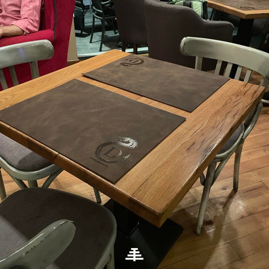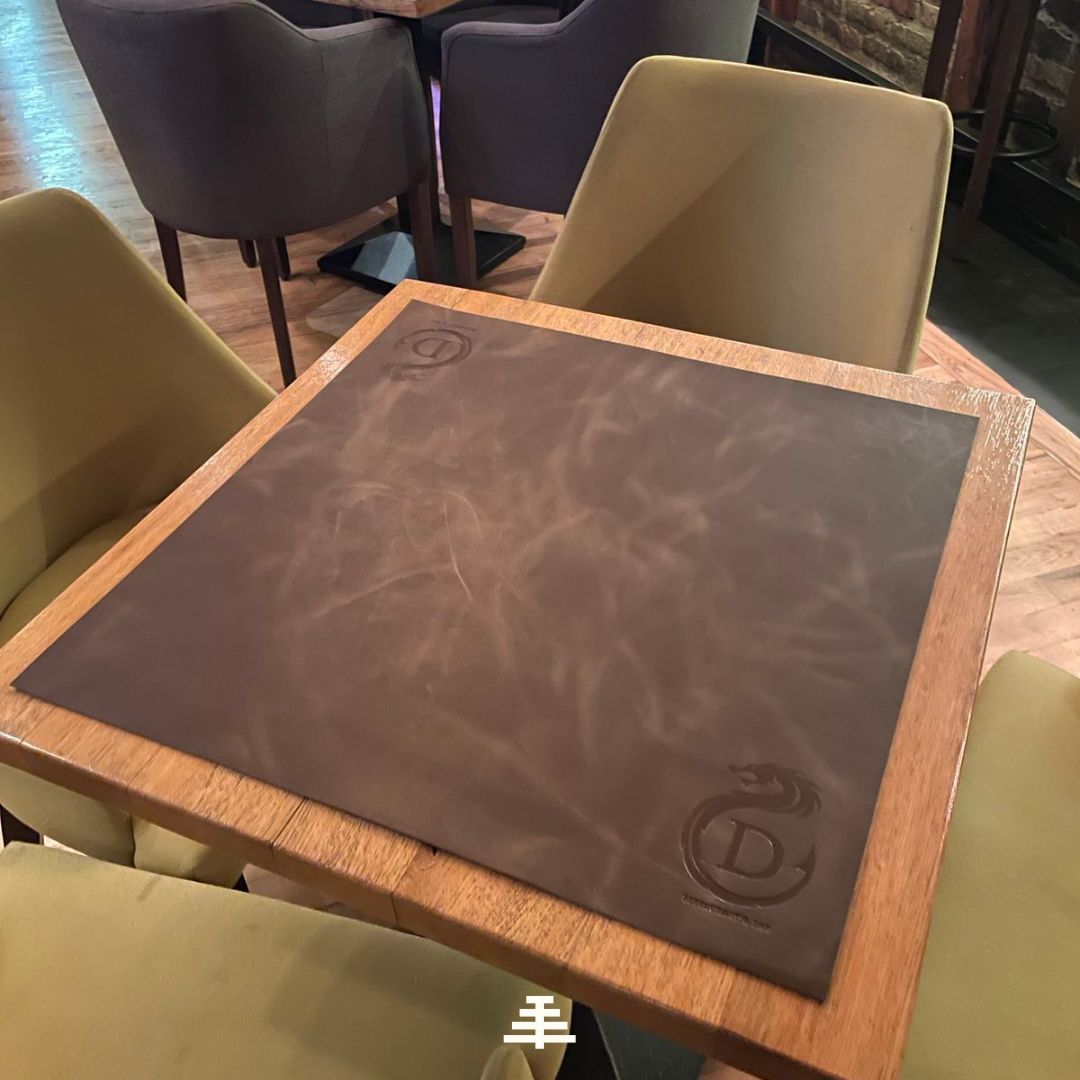 Prostirka je ručno proizvedena od kože. Zamišljena kao dekor ukras u domu ili poslovnom prostoru.